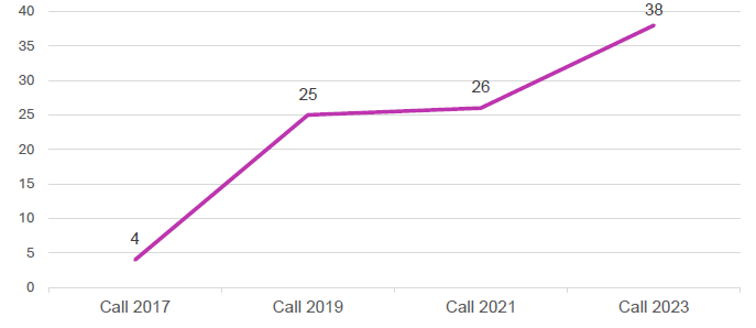 The incentive to exploit the potential of a talent pool from less represented countries proved successful within the 2017, 2019, 2021 and 2023 QuantERA Calls, where 77% of the funded projects involved research teams from the Widening Countries.